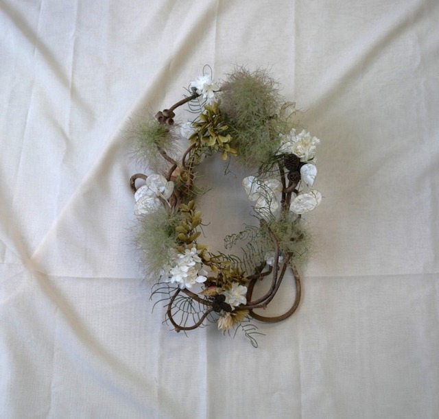 ドライフラワーのリースです。 ルナリアをベースに白い実や千日紅などを使ってつくりました。 こちらのリースは楕円形のリースです。 壁に掛けて飾っていただけるように後ろにワイヤーがついています。 size 約 縦33cm 横24cm セロファンでラッピングをして、お送りさせて頂きます。 作品が届き次第、すぐにご開封をお願いいたします。 ドライフラワーは湿気が多いところを避けて保管してください。 また光に長時間当たると色あせし、痛みやすくもなりますのでご注意下さい。 なるべく日の当たらないところに飾って楽しんで下さい。 ご来店でのお引き取りをご希望の方は、お店の方へ直接お電話・FAX・ご来店の上、ご注文ください。 ご不明な点やお急ぎのご用件がございましたら、営業時間内に店舗までお電話くださいませ。 ローブリーク TEL 086-221-3425 営業時間 11:00~18:00 定休日 火曜日・水曜日