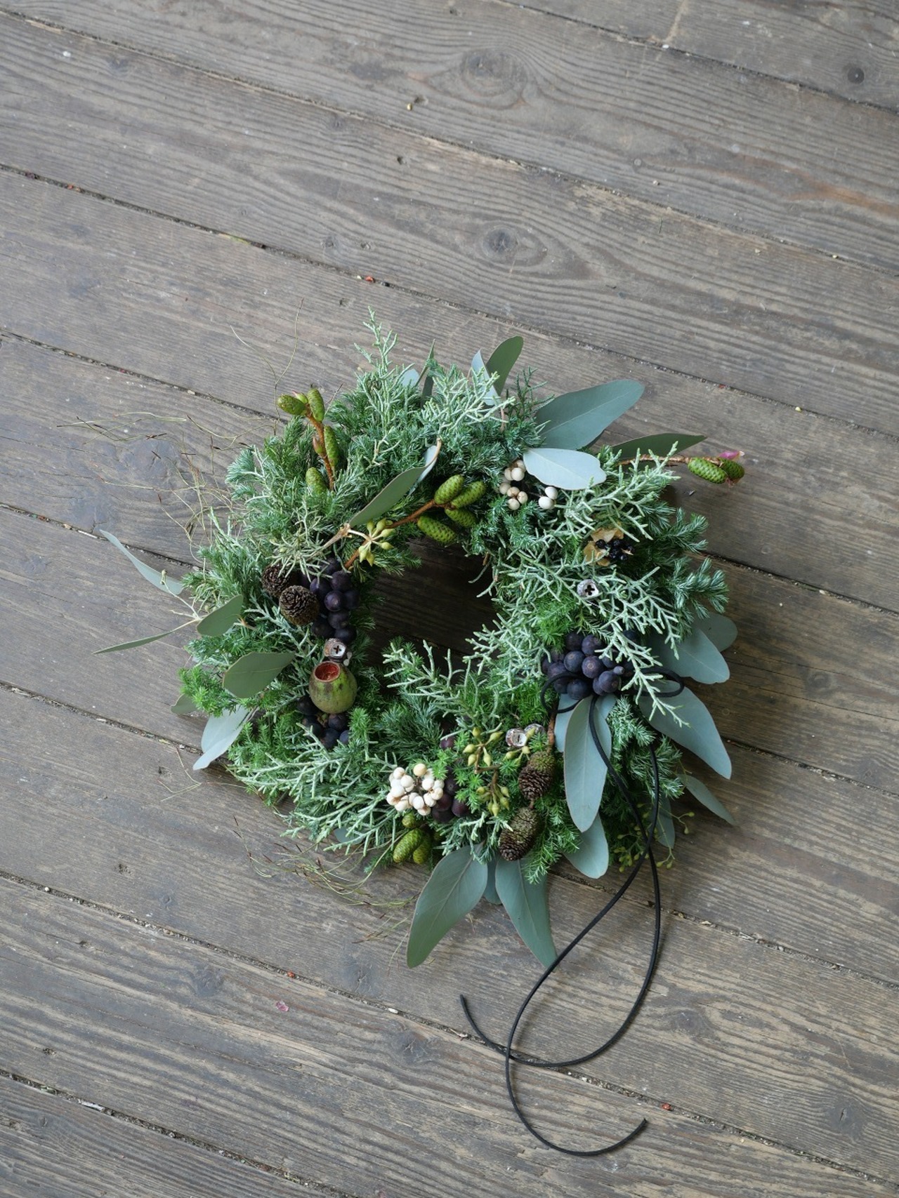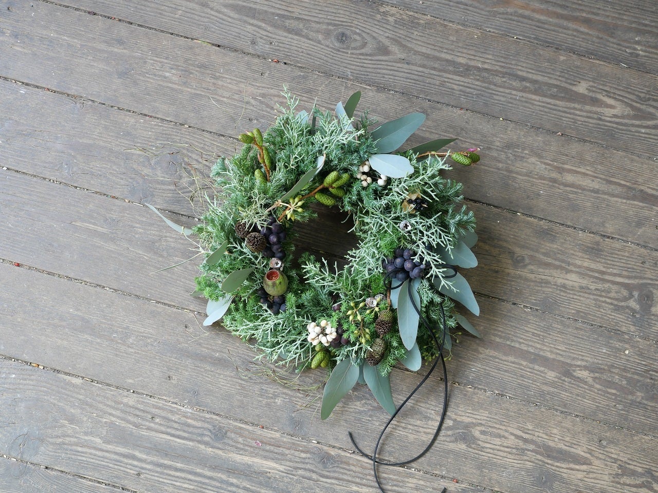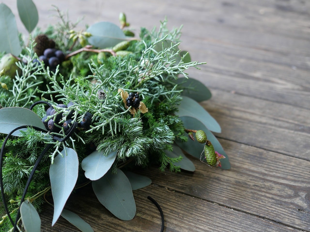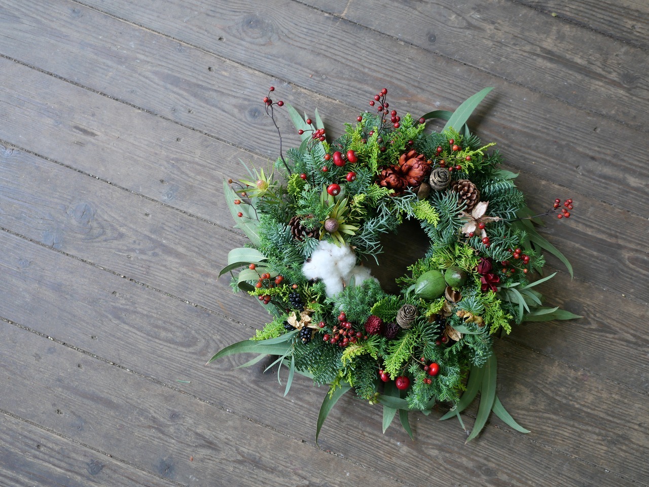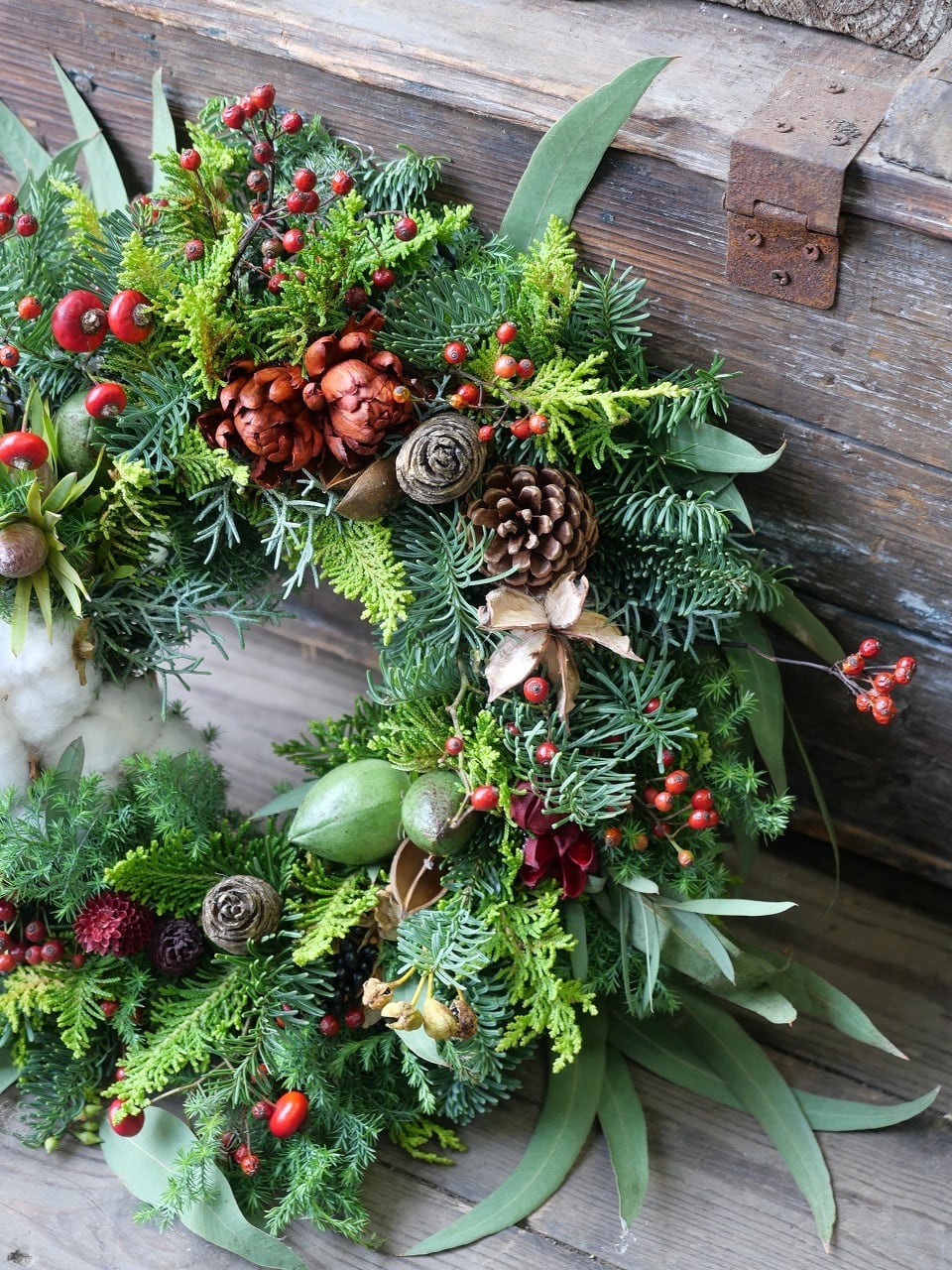 針葉樹を使ったクリスマスリースです。