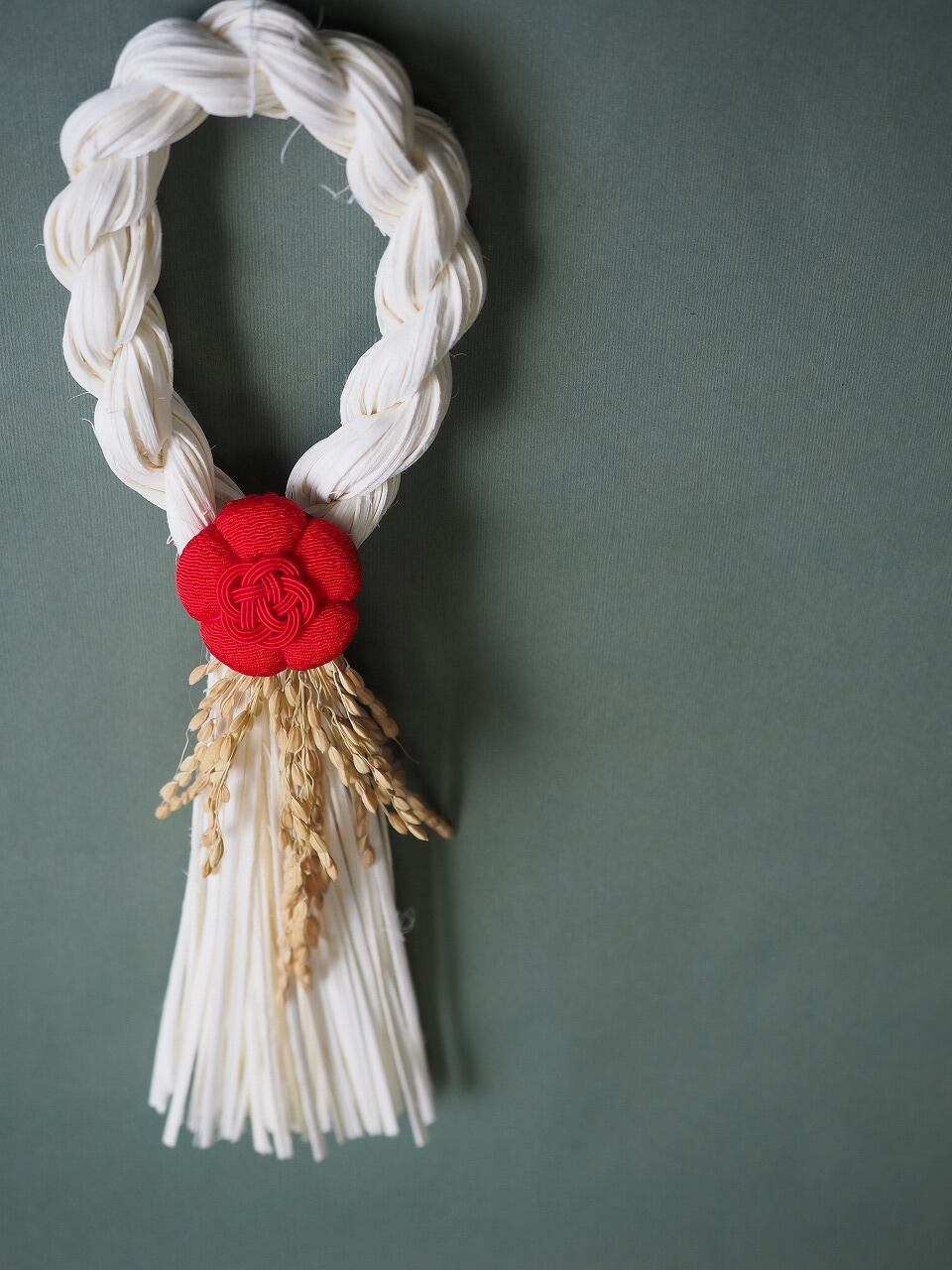 白いしめ縄とお米でかわいく仕上げています。