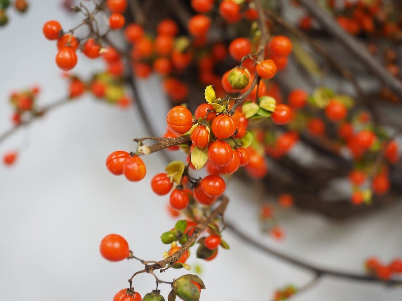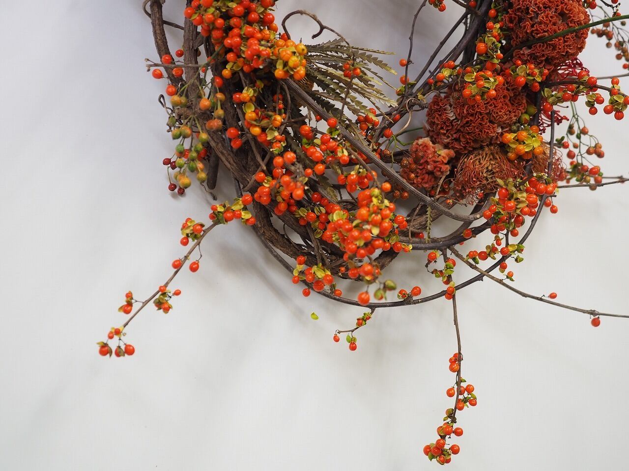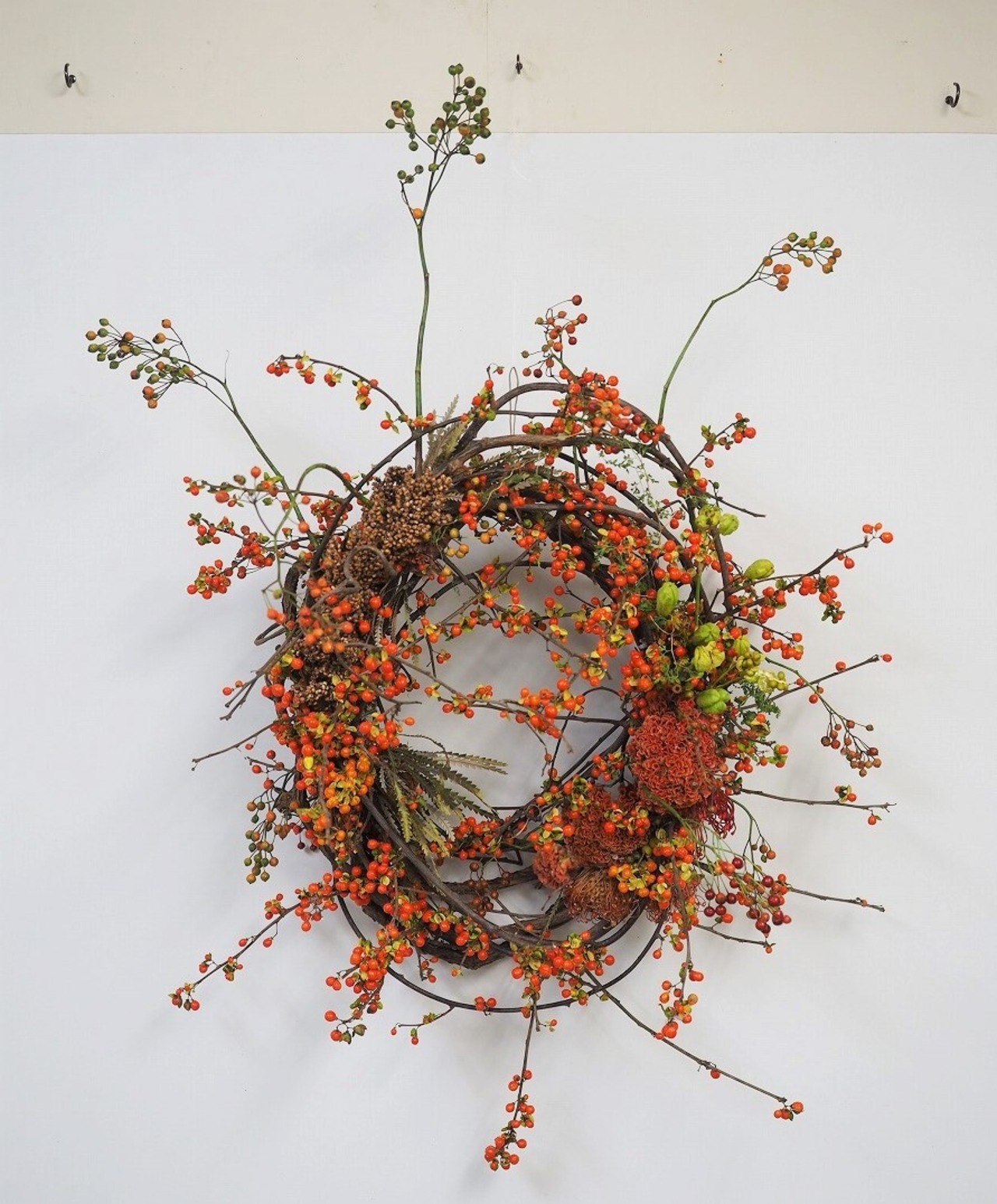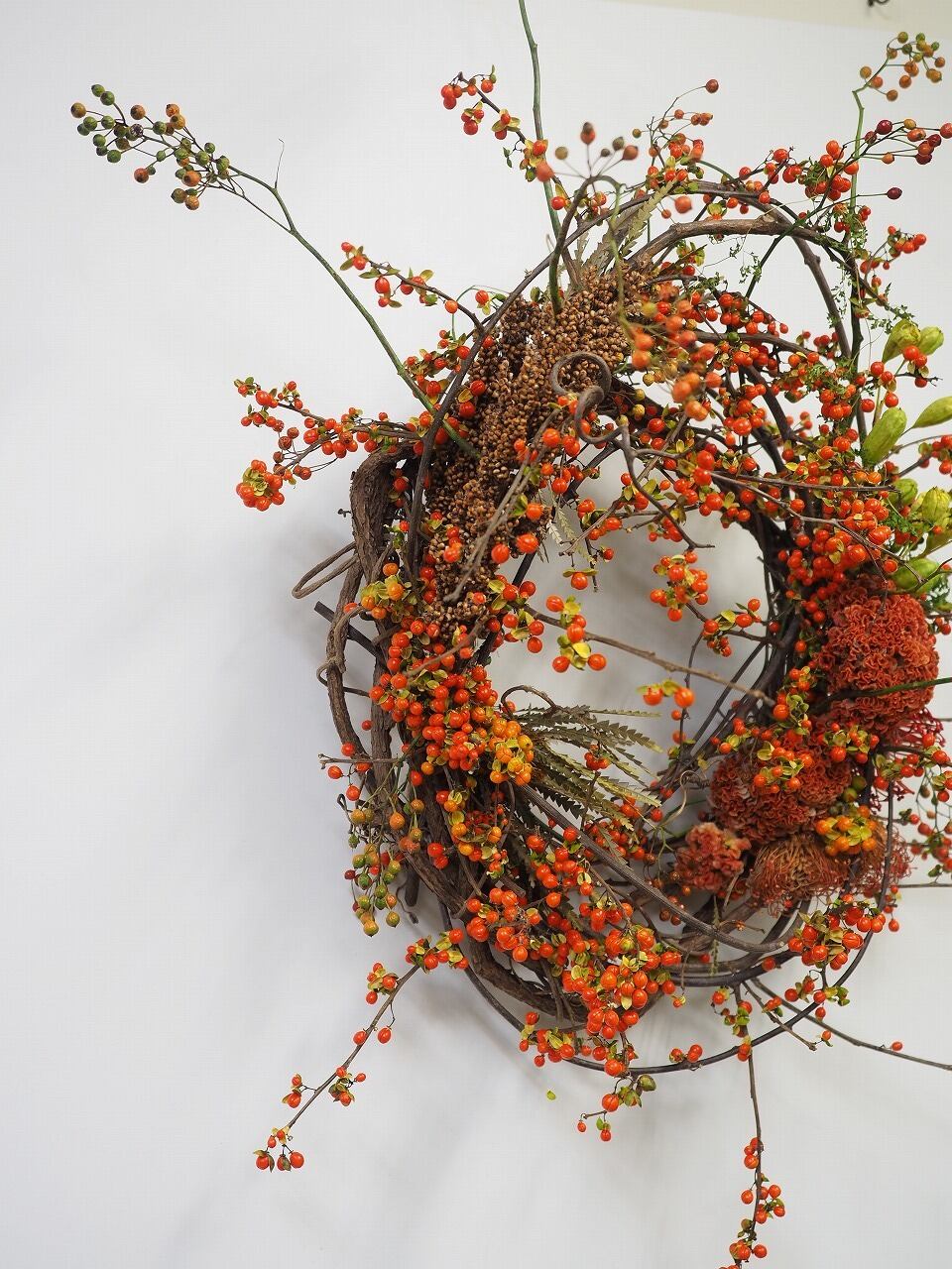 ツルウメモドキをメインにノイバラ・ケイトウ・ソルゴなどで大きめに作りました。