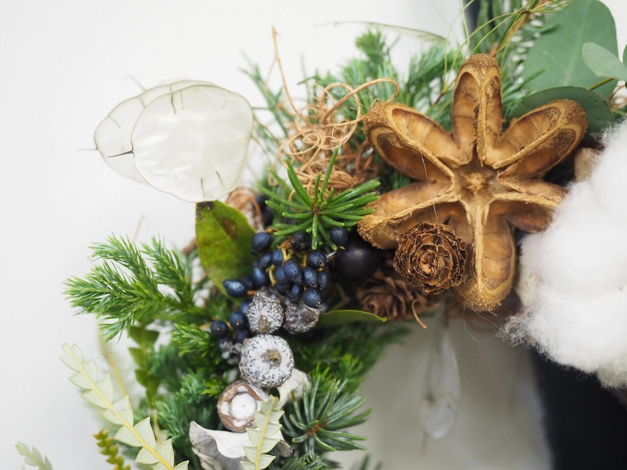 白いコットン・ルナリア・エリンジウム 実ものなどでつくった