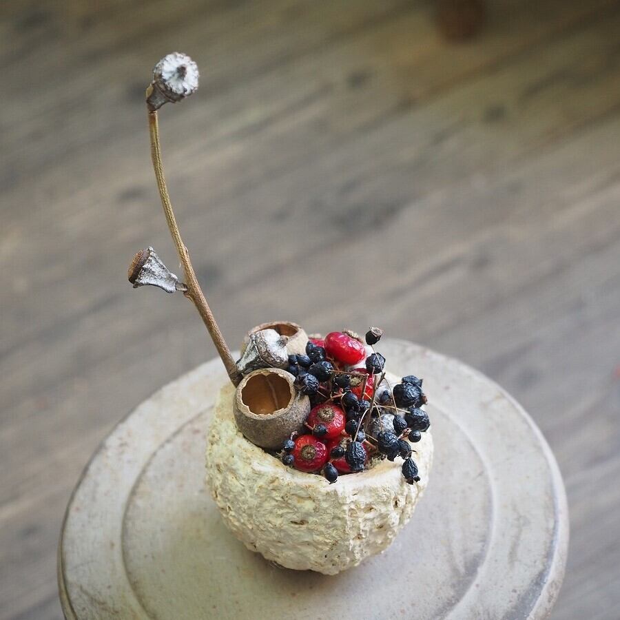 ナッツの殻に実ものをぎゅぎゅっと詰め込みました。