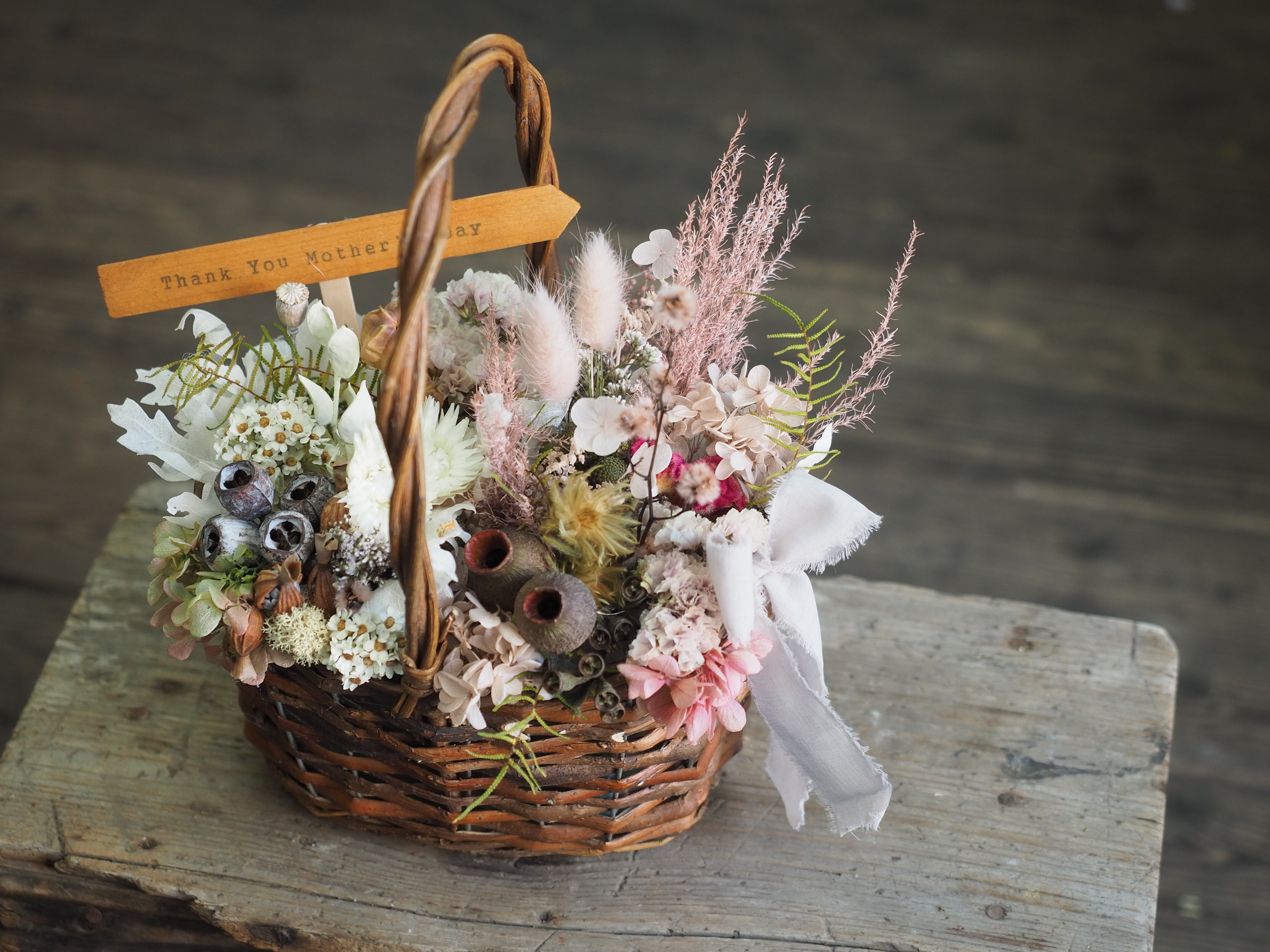 母の日用のドライフラワーのアレンジメントの大きめサイズです。