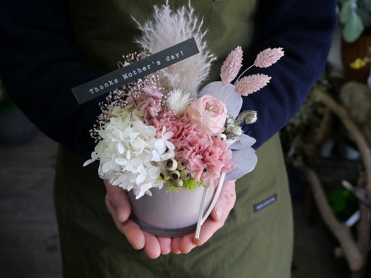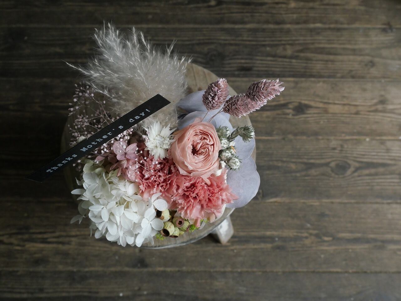 母の日用のプリザーブドフラワーのアレンジメントです。