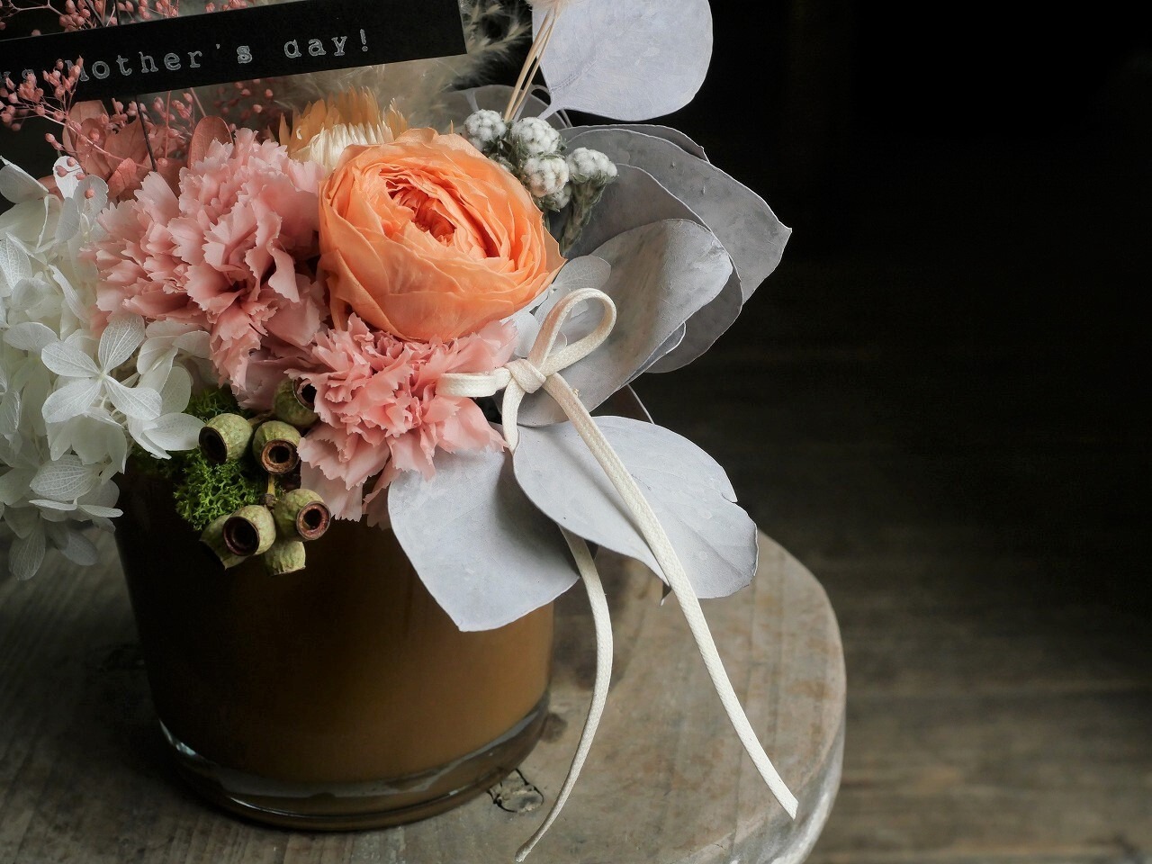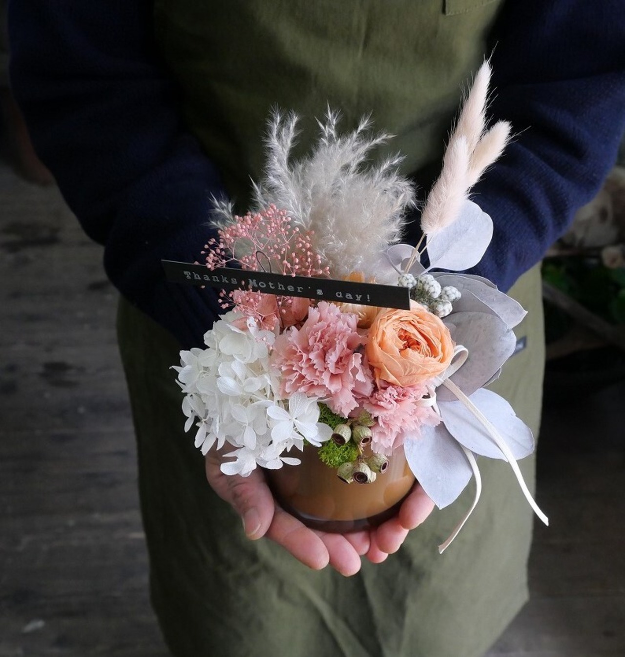 母の日用のプリザーブドフラワーのアレンジメントです。