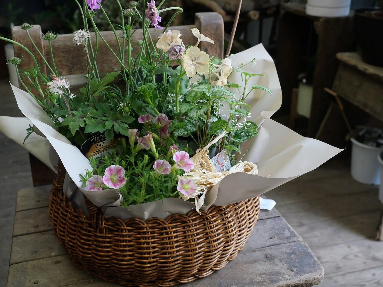ポット苗をかごから出してお庭に植えたり、少し大きめの鉢に植え替えたりして長く楽しんで下さい。