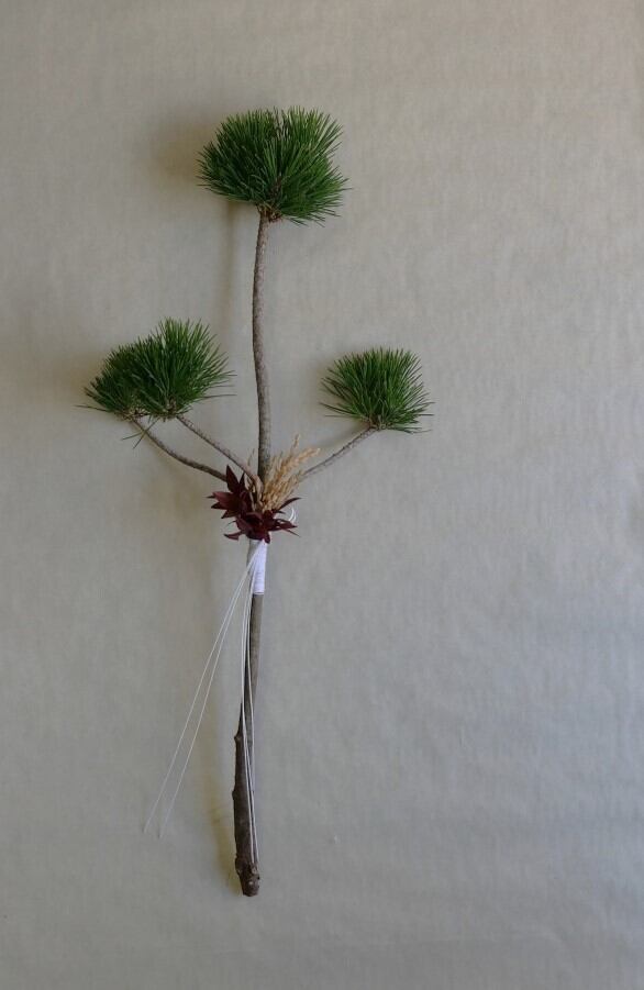 ピンポン松に白色の水引を巻いた縦長のシンプルなお飾りです。