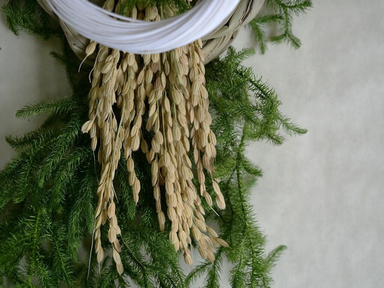 しめ縄にヒカゲカズラを垂らした縦長のお飾りです。