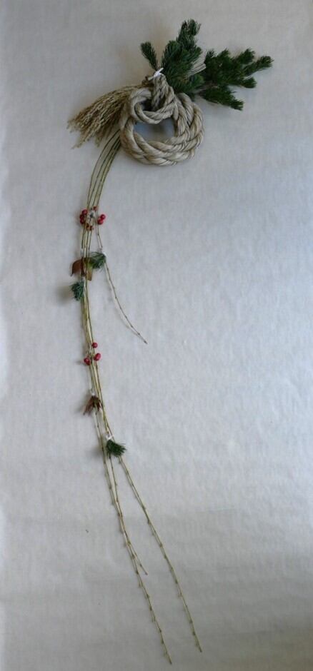 しめ縄に柳や松を合わせた縦長のお飾りです。