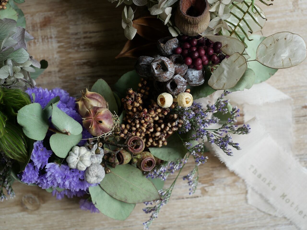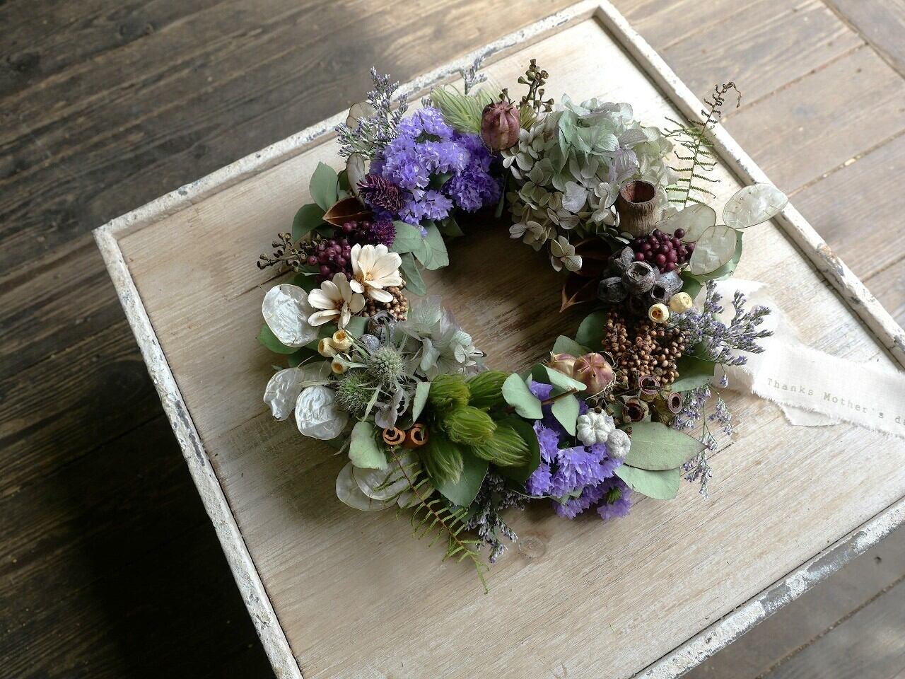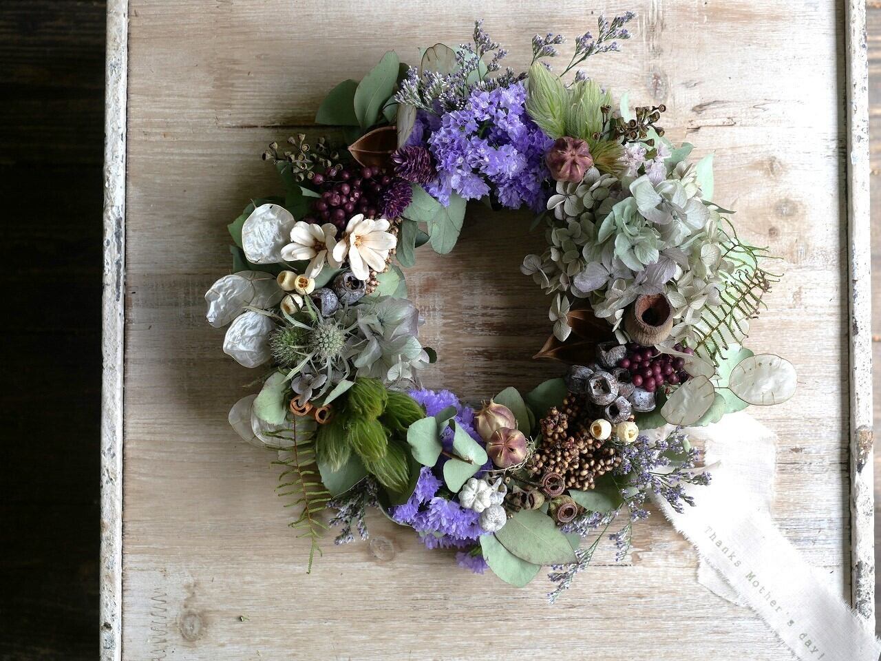 母の日用ドライフラワーリースです。