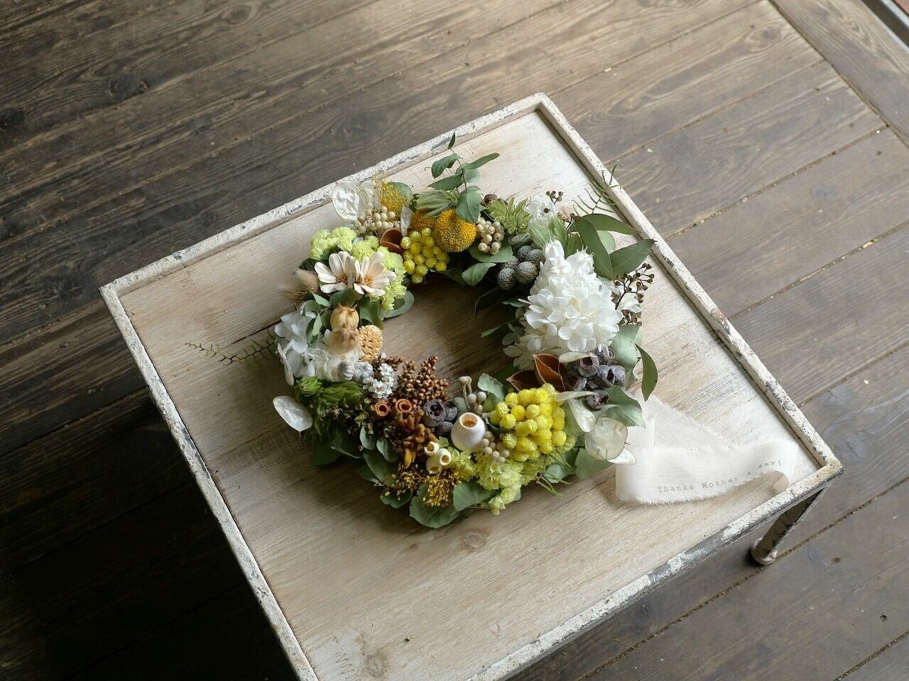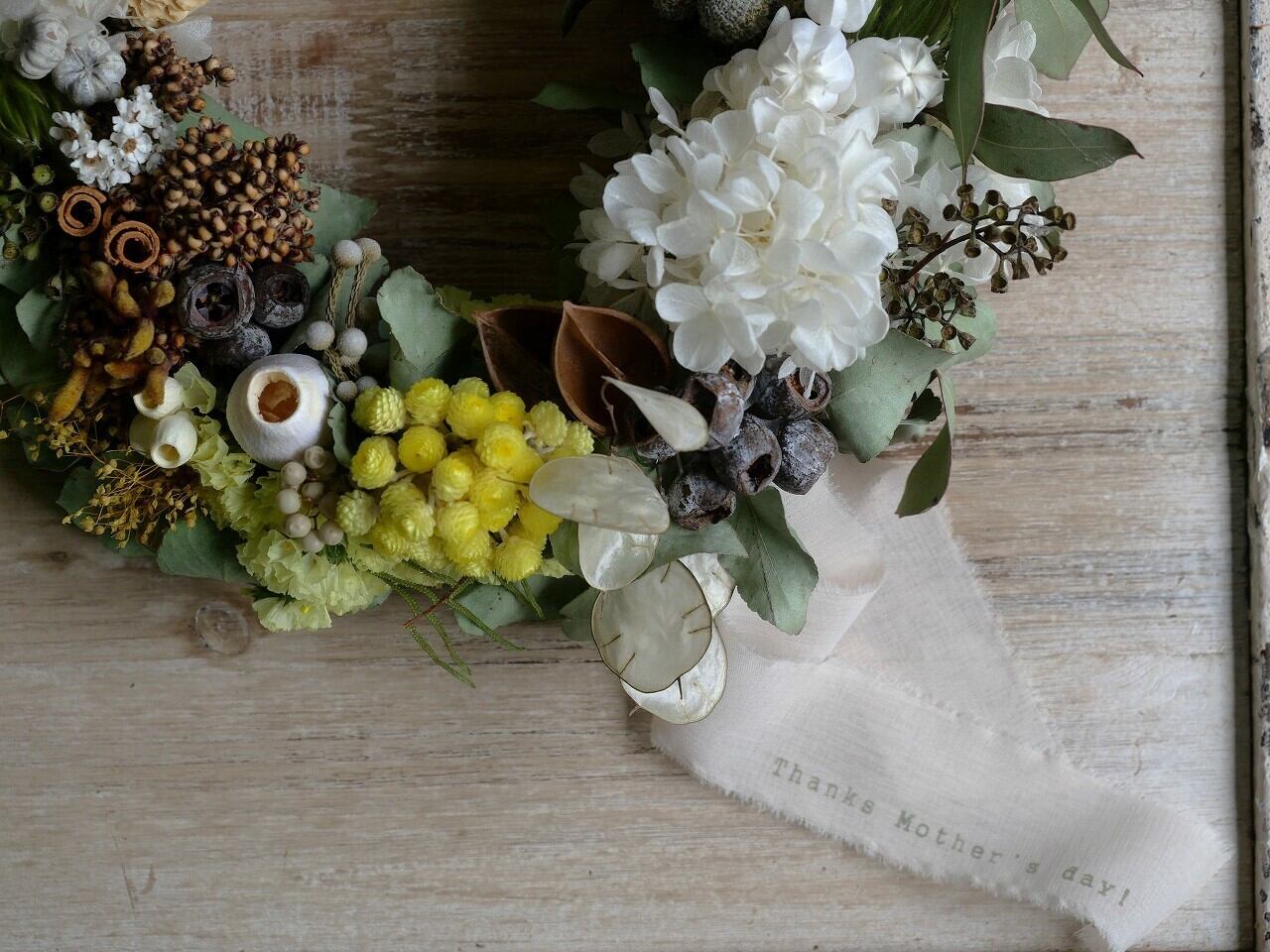 母の日用ドライフラワーリースです。