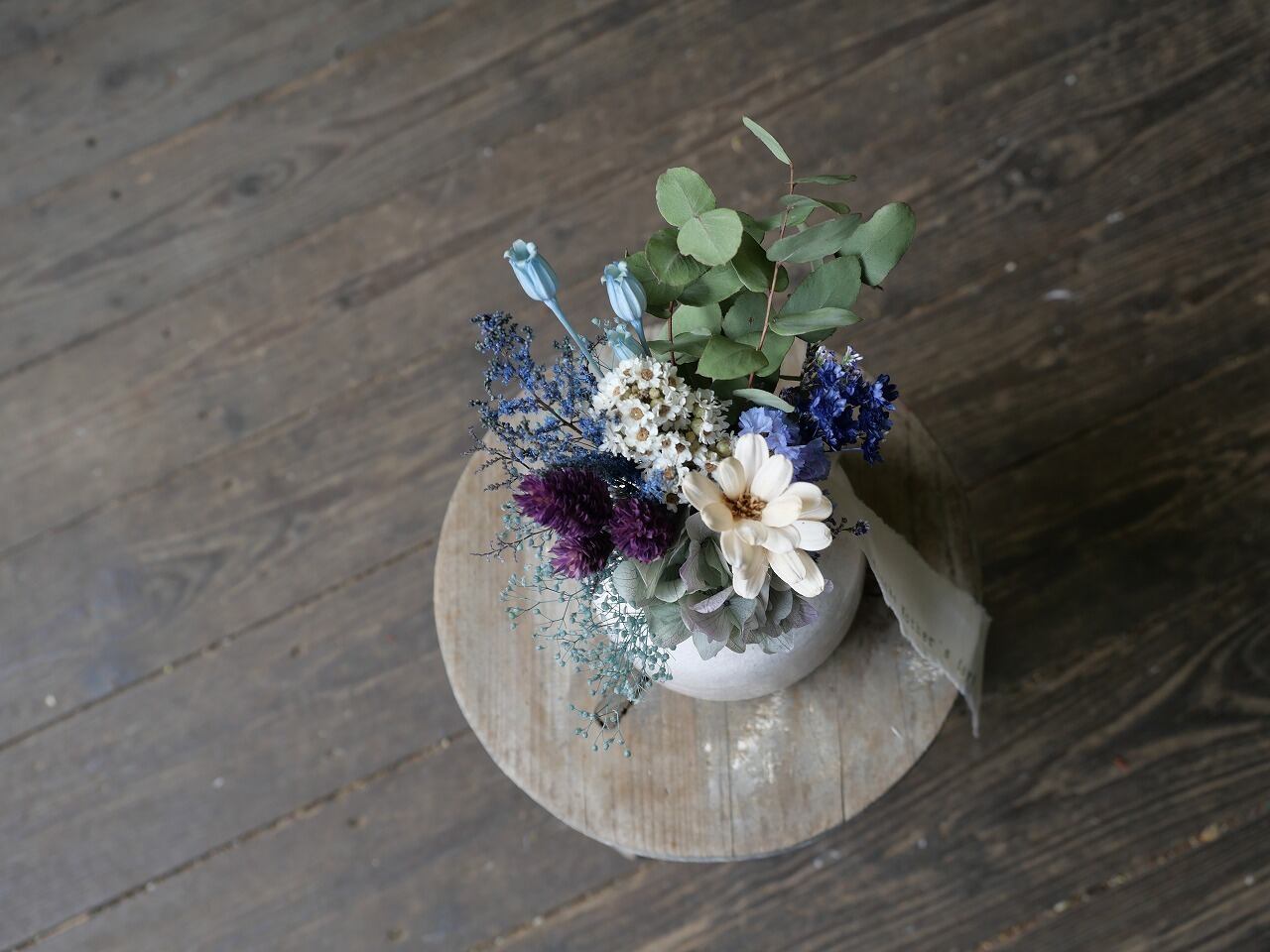 母の日用ドライフラワーのミニブーケです。花瓶もセットの商品です。