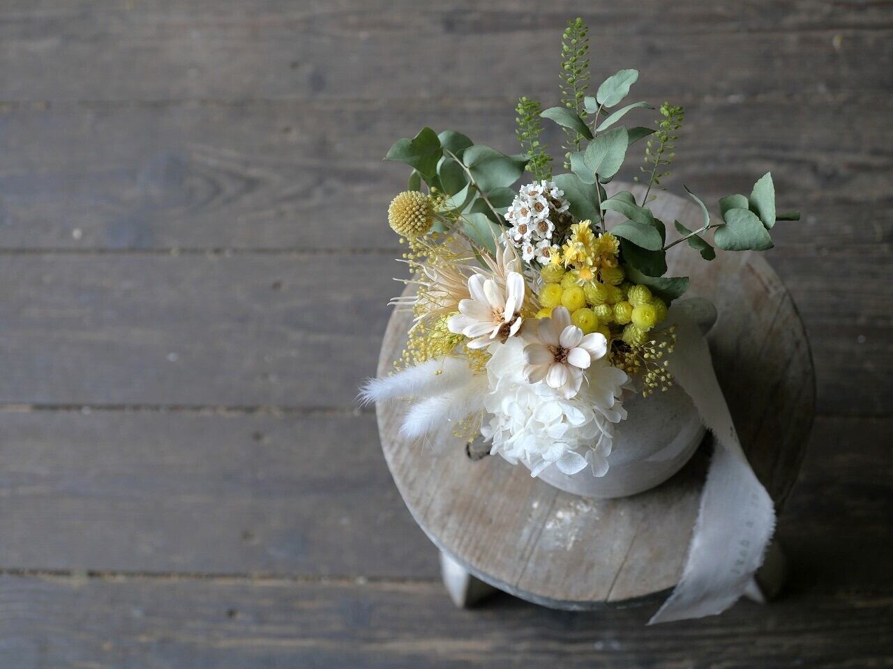 母の日用ドライフラワーのミニブーケです。花瓶もセットの商品です。