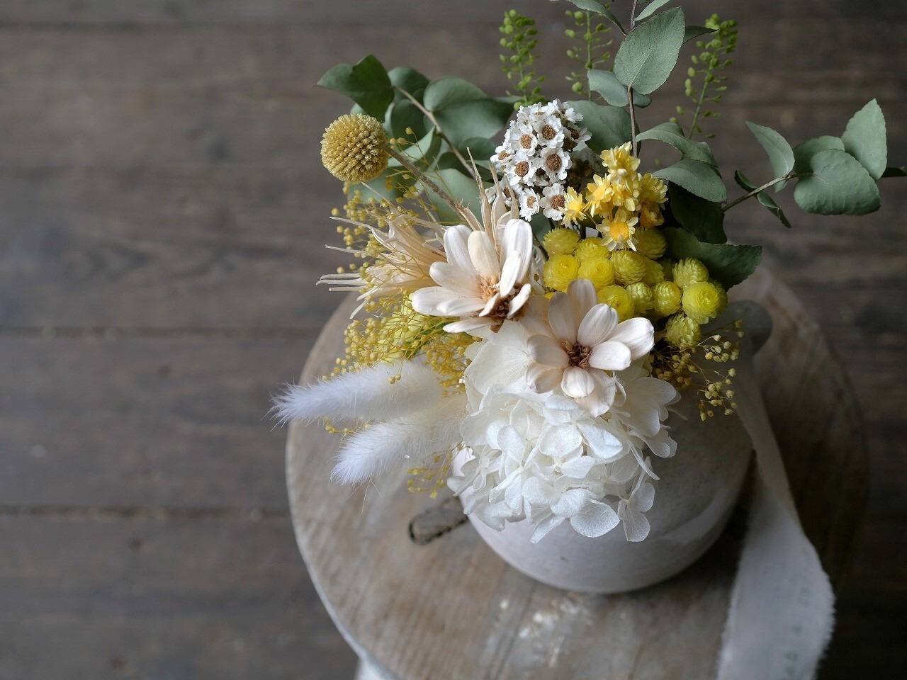 ② 2024母の日用ドライフラワー花束 花瓶付き イエロー