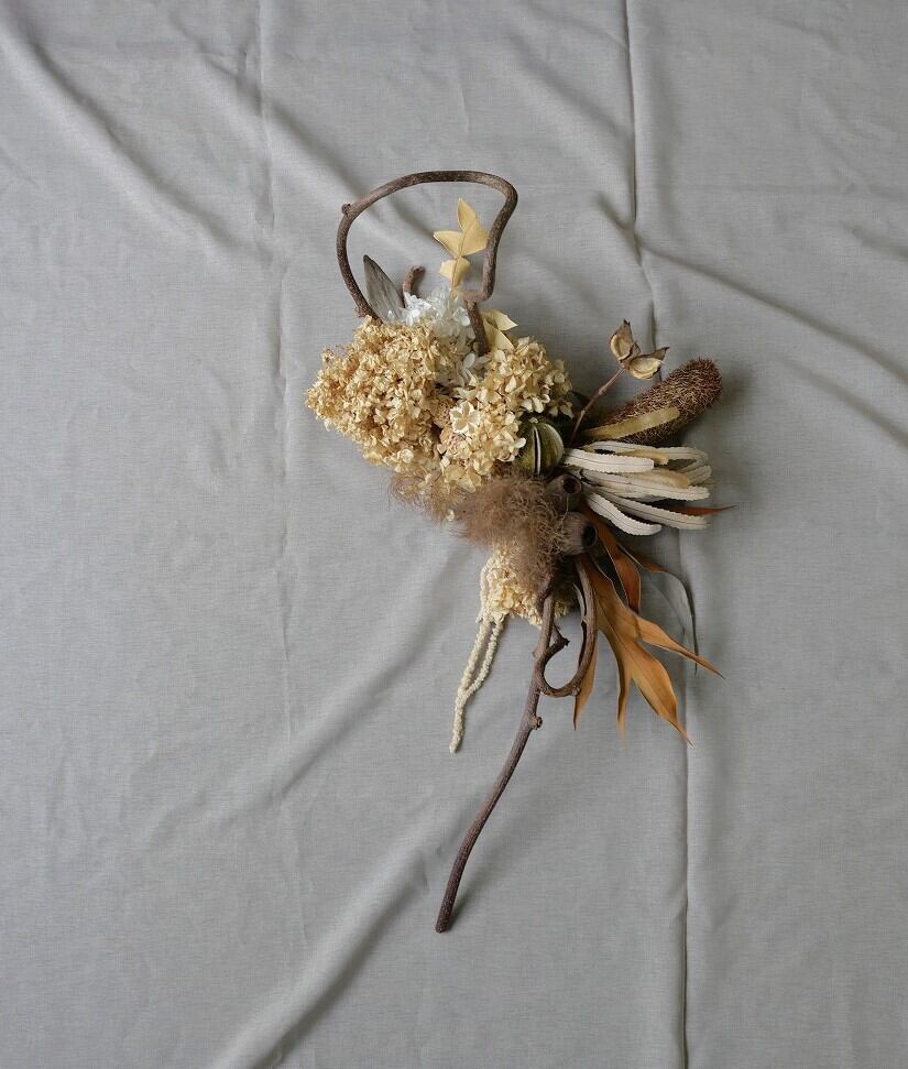 バンクシアと木の実やユーカリの実を使ったオブジェです。