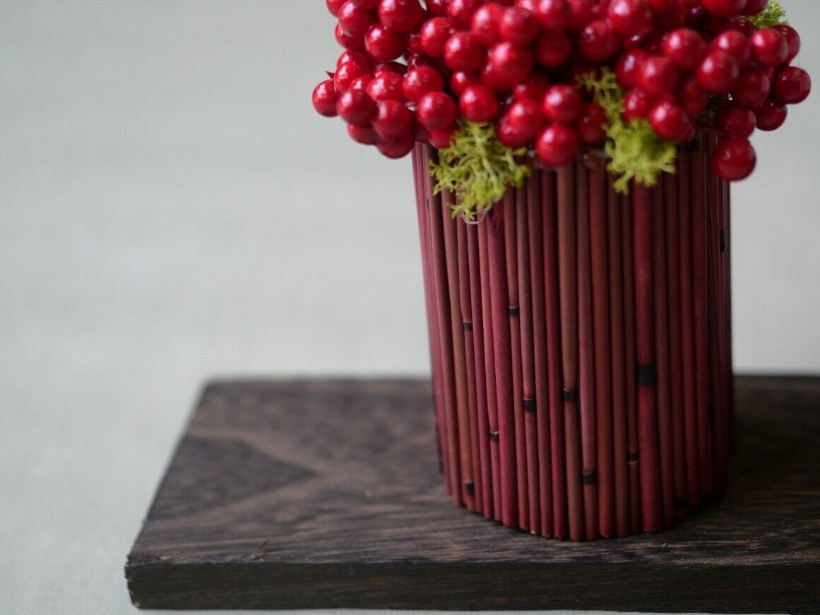 赤い実・アジサイを使ってアレンジしています。