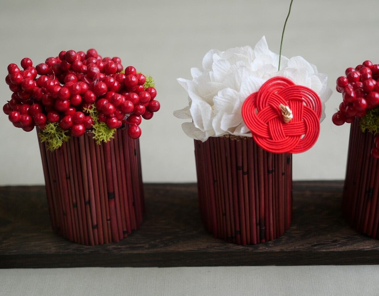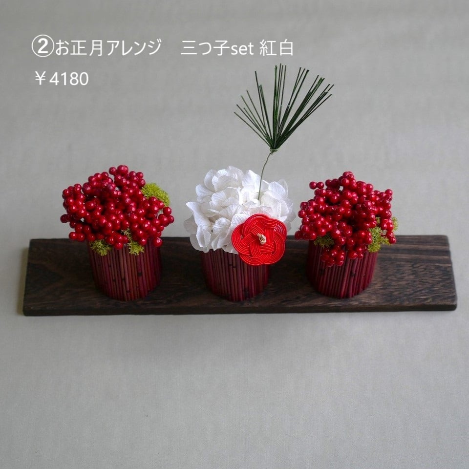 ②お正月アレンジ 三つ子セット 紅白